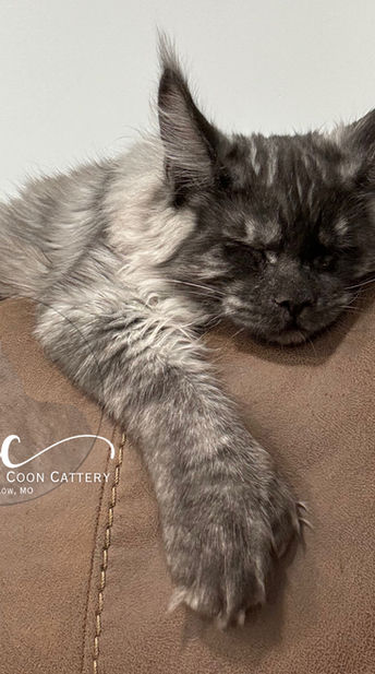 Tybalt, or as we affectionately call him, "Tybee". He is a stunning Brown XL Classic Tabby. He is by far the most laid back boy in our cattery. Tybee has such a sweet personality, he knows no stranger! He seeks us out and is an insistent snuggler! He is CFA and TICA registered with European bloodlines. Tybee is a big boy, he's currently 20# at a year old.